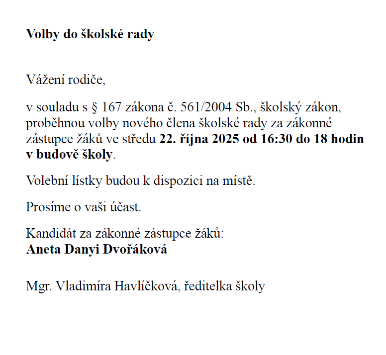 Volby do šk. rady - kandidáti za zákonné zástupce